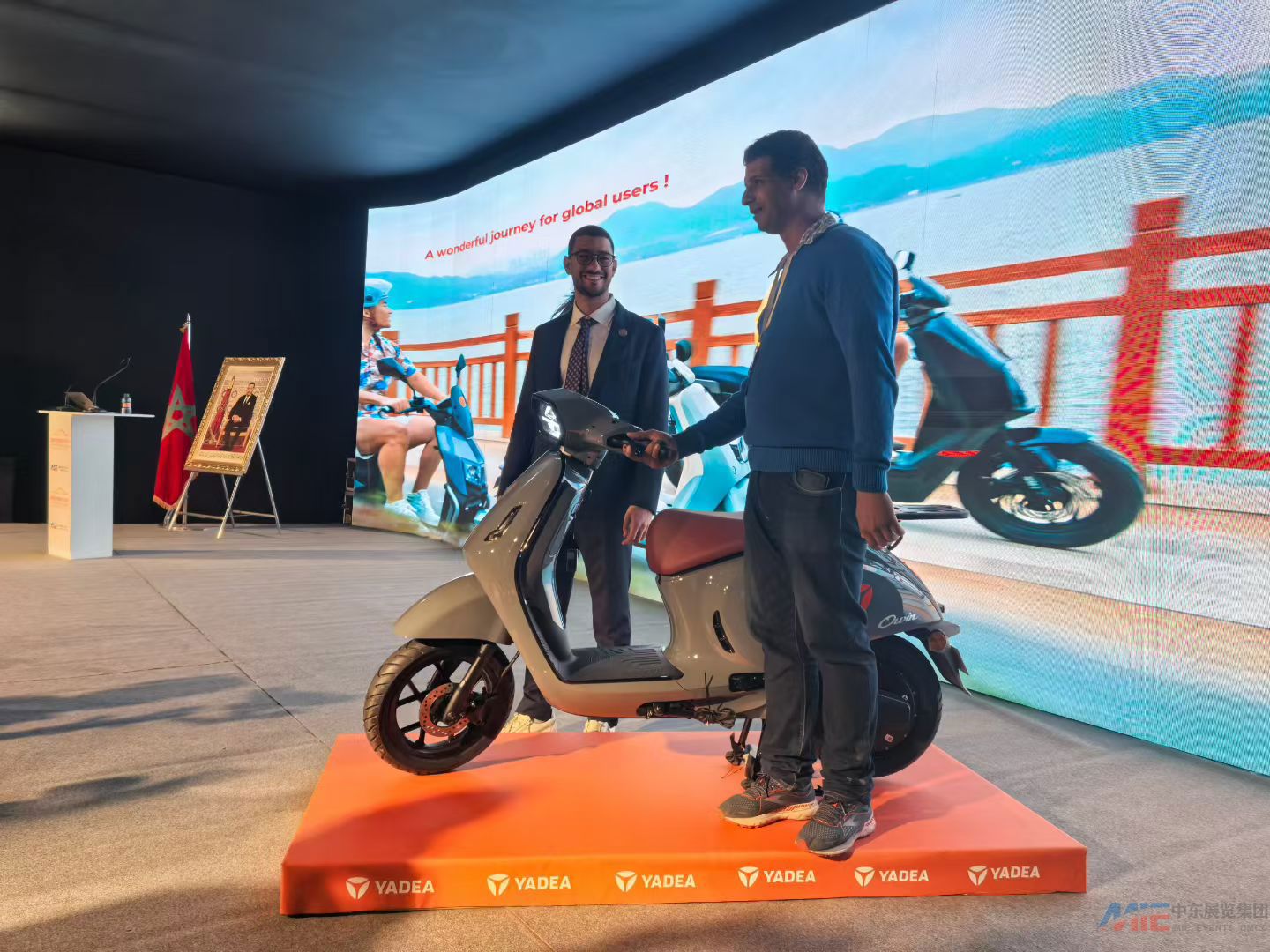 剪彩仪式的鎏金剪刀落下,展会正式拉开帷幕。摩洛哥王国工业与贸易部长Ryad Mezzour、江苏省贸促会会长王善华、摩洛哥汽车工业与贸易协会(AMICA)主席Rachid Maachou、MIE集团总裁王海林等政企名流齐聚,AMICA、AMDIE、CRI等机构高层共同见证这一重要时刻。